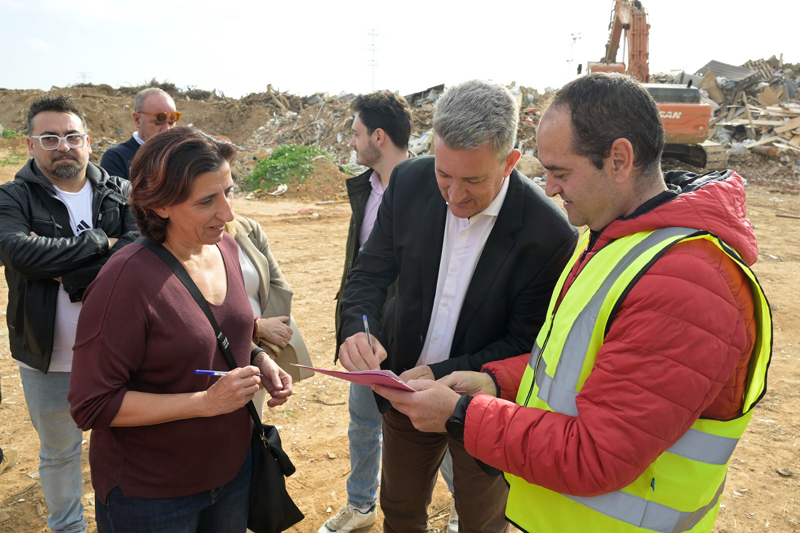 Els treballs de retirada de residus i escombraries acumulades a la zona ubicada entre el Palleter i la piscina coberta de Paiporta ja han començat. Este matí, la vicealcaldessa del municipi, Marian Val, el regidor de Reconstrucció, Alejandro Sánchez, el regidor de Medi Ambient, Óscar Pellicer Gil i altres membres del grup municipal, han rebut al conseller per a la Recuperació Econòmica i Social de la Comunitat Valenciana i de Medi Ambient, Infraestructures i Territori, Vicente Martínez Mus, per a signar formalment l'inici de la neteja d’esta parcel·la. Este espai ha estat utilitzada temporalment per dipositar els residus generats per la reconstrucció de les vivendes i locals afectats per la DANA d’octubre de 2024.