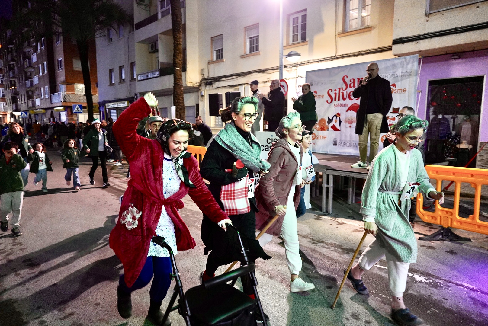 Una família vestida al complet com si de la mateixa pel·lícula ‘Els Increïbles’ es tractara; un nombrós grup de xiquets, de verd i amb la gorra de Pare Noel, prenen posicions, mentres de fons apunten dos corredors que simulen ser dinosaures i una corredora vestida de lluitadora de sumo. Estes són algunes de les divertides escenes que es van viure este dissabte als carrers de Paiporta durant la Sant Silvestre Solidària.